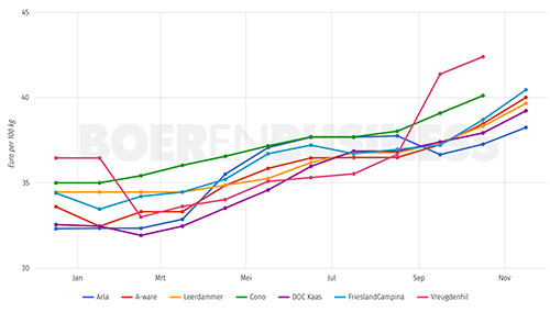 Je melkprijs vergelijken met die van andere aanbieders? Dat kan met onze Melkprijsvergelijker. Met deze tool krijg je direct inzicht in de verschillende prijzen van diverse aanbieders. Ook is het mogelijk om historische melkprijzen van verschillende jaren met elkaar te vergelijken, van zowel gangbaar, biologisch als de Belgische verwerkers.