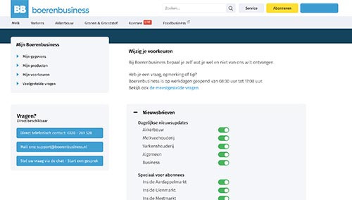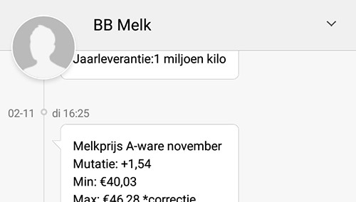 Indien gewenst kun je je ook aanmelden voor de Belgische melkprijzen van Arla, FrieslandCampina, A-ware, Laiterie des Ardennes en Milcobel. Deze SMS-berichten behoren niet standaard tot het abonnement, maar zijn na afsluiten van het abonnement wel gratis toe te voegen via 'Mijn Boerenbusiness'.