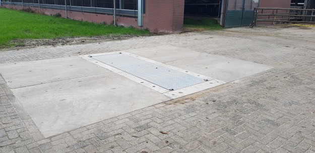 Voor een goede weging is het belangrijk dat de weegbrug op een vlak deel van het erf wordt aangelegd. De fundering is geprefabriceerd en het complete systeem is vaak binnen 1 dag te plaatsen. Aan de voor- en achterkant worden stelconplaten gelegd, zodat de op- en afrit vlak blijven. Ook als het erf in de loop der jaren na aanleg wat verzakt. De weegbrug ligt vlak met de rest van het erf en vormt daarmee geen obstakel.