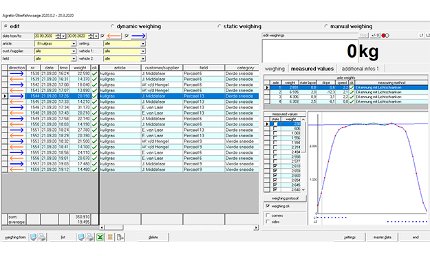 Het systeem ziet welke richting het voertuig rijdt, vervolgt Van Laar. "Als een volle vracht het erf oprijdt, kan deze worden gewogen. Bij het verlaten van het erf rijdt de combinatie de andere kant op en wordt deze weer gewogen. De software bij de weegbrug kan de gewichten bijvoorbeeld per perceel of per dag bijhouden."