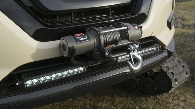 Het meest opvallend aan de Rogue crossover zijn de 4 rupsen waar hij op staat. Die heeft Nissan bij American Track Truck ingekocht. Technisch is de auto verder ongewijzigd gebleven, zo zegt een woordvoerder. Alleen de wielkasten en vering zijn aangepast. Wel is de afdeling vormgeving aan de slag gegaan met het design. Zo kreeg hij een camouflage wrap, gele 'militaire' koplampen, fikse LED-lampen en een lier die 1.800 kilo kan trekken.