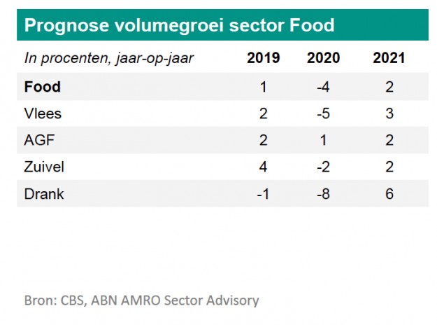 De bank verwacht voor volgend jaar een herstel van 2% voor de foodsector, meldt de organisatie vandaag (vrijdag) in een sectoranalyse. Volgens Nadia Menkveld, sector econoom food bij ABN Amro, heeft de impact van de coronacrisis op de foodsector 2 gezichten. Bedrijven die leveren aan (online) supermarkten groeien flink, terwijl bedrijven die aan de horeca leveren stevige klappen moeten incasseren.