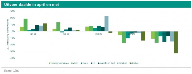 Hierdoor daalde de vraag vanuit restaurants, fastfoodketens en cafés in belangrijke exportlanden en kreeg de export een knauw. "Gelukkig was de export in juni alweer een stuk positiever, maar de afzet van foodproducten in het buitenland zal voorlopig nog onder druk blijven staan", aldus Menkveld.