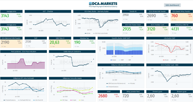 Marktdata op deze manier delen kan nu heel eenvoudig op onze nieuwe website. Met data uit onze databases. De belangrijkste informatie rondom akkerbouw, zuivel, vee en voer is daarin opgenomen. U kunt met speciale maatwerkoplossingen ook overzichten creëren en bijhouden met uw eigen data of met informatie van derden.
