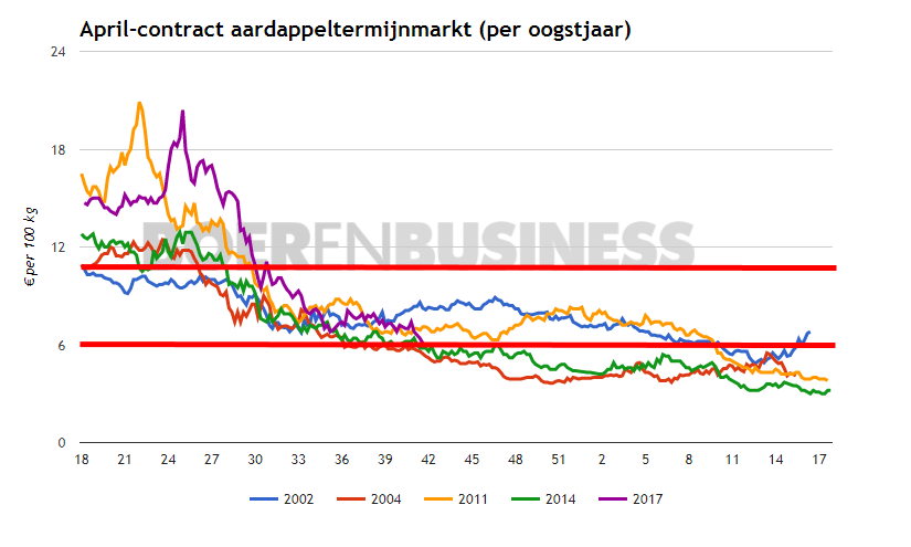 De termijnmarkt maakt wederom een klassieke beweging. In de afgelopen 15 jaar heeft de termijnmarkt een voorspelbaar gedrag getoond door bij een daling door de €10 grens heen altijd door te zakken naar €6. Ook dit jaar heeft de termijnmarkt deze beweging laten zien.
