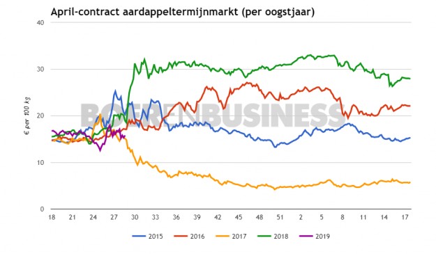 Wordt het een 2017 oogstjaar met marktprijzen lager dan €10? Of mag er weer een gemiddelde marktprijs boven het €20 niveau worden verwacht, zoals in oogstjaar 2016 en 2018? Een jaar met een prijsrange het komend seizoen tussen de €15,00 en €20,00 is ook niet uit te sluiten. Daarvoor moet er worden gekeken naar oogstjaar 2015, toen de termijnmarkt van het april 2016 contract afwikkelde op 15,20 euro.