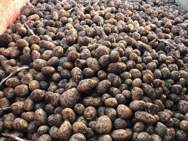De loonwerker is nu in graafschap Herefordshire aan het rooien, tegen Wales in het zuidwesten van het land. Is hij daar klaar, dan vervolgt het rooiwerk verder noordelijk in Shropshire. "Ik heb het idee dat het op het moment nog natter is dan in 2012", vertelt hij vanaf de rooier. "Ik schat in dat in het gebied waar ik nu zit, nog 50% van de aardappelen in de grond zit. Van de helft die gerooid is, is veel onder slechte omstandigheden van het land gehaald. Je moet rekenen dat uiteindelijk zo'n 25% hiervan goed product is. Wat we nu rooien, zijn mooie aardappelen. Er zit geen rot in de partij en ze zijn mooi schoon."