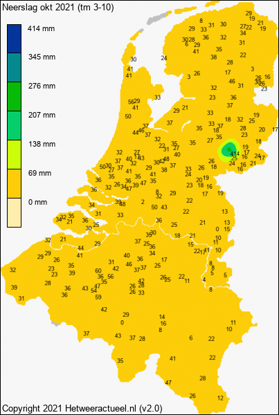Afgelopen weekend is in de meeste delen van Nederland tussen de 20 en 40 millimeter neerslag gevallen. Vooral de kustgebieden kregen een hoeveelheid regen van betekenis te verwerken. Omdat de omstandigheden veelal erg droog waren en omdat de regen rustig viel, levert dit geen problemen op. Alleen in het zuidoosten en zuiden van Limburg viel nauwelijks regen. Het rooien van de hoofdoogst moet daar nog grotendeels beginnen. Akkerbouwers zijn nog de laatste uien aan het verwerken.