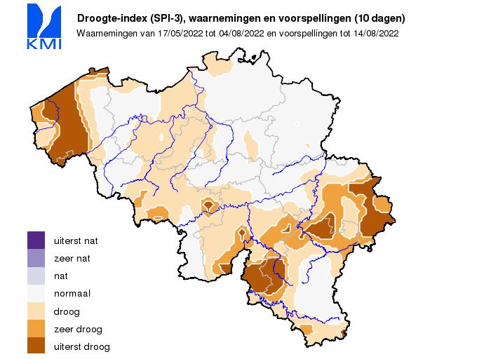 De aardappelpercelen in Wallonië staan er beter voor dan die in Vlaanderen, zo tonen de cijfers die PCA en Fiwap deze week publiceerden. Niet eerder kende België zo weinig dagen met neerslag (142 dagen versus 199 gemiddeld). In West-Vlaanderen is het gortdroog en juist dat is een grote teeltregio. Het Belgische weerinstituut KMI verwacht dat deze situatie de komende tien dagen verder uitbreid. Wat opvalt zijn de extreem hoge onderwatergewichten. Soms zelfs boven de 450 gram. Kijkend naar de weersverwachtingen dan krijgen vooral de mindere percelen het voor hun kiezen de komende tien dagen.