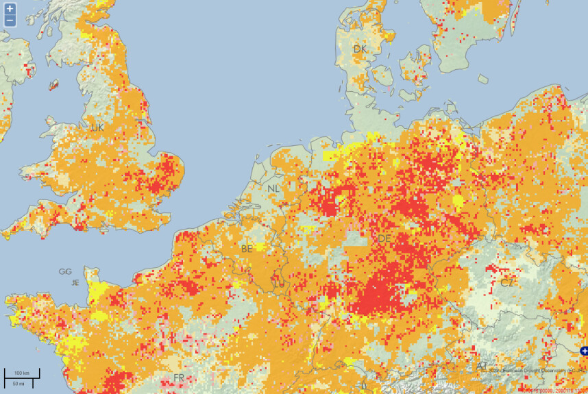 Het is al maanden droog in grote delen van Europa. Dat speelde eerder deze zomer vooral in Zuid-Europese landen, maar inmiddels kunnen ook Noordwest- en Centraal-Europa de gevolgen merken. Een zeer laag neerslagniveau trekt als een sluipmoordenaar door de gewassen. Daarnaast is tijdens de extreem hoge temperaturen van twee weken geleden een slijtageslag gestart, die bij het huidig weertype steeds meer grip op de aardappelen krijgt.