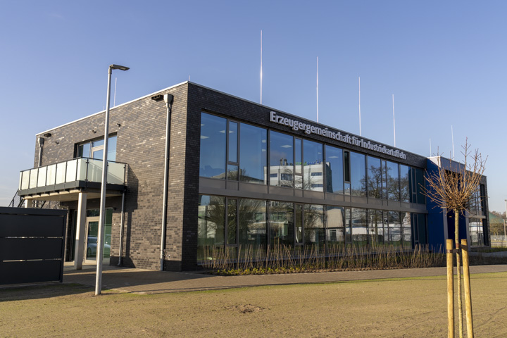 Tegenover de fabriek van Emsland prijkt het gloednieuwe kantoor van EZG. Het wordt grotendeels aan Emsland Group verhuurd.