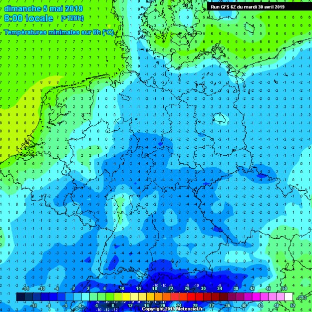 Voor Frankrijk, Duitsland en Polen is dat anders. In deze landen kan het 3 tot 4 graden vriezen en aan de grond kan het lokaal tot -7 graden Celsius zijn. Voor de jonge suikerbietenplanten en de aardappelen, die net bovenkomen, is dat op zijn zachtst gezegd verre van ideaal. Akkerbouwers zijn dan ook bezorgd.