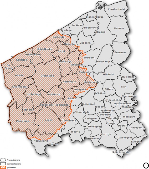 Dit beregeningsverbod is voor onbepaalde tijd. Het gaat om het gebied IJzerbekken, waar 27 gemeentes onder vallen. Grofweg is dit het gebied ten zuidwesten van de steden Oostende en Ieper.