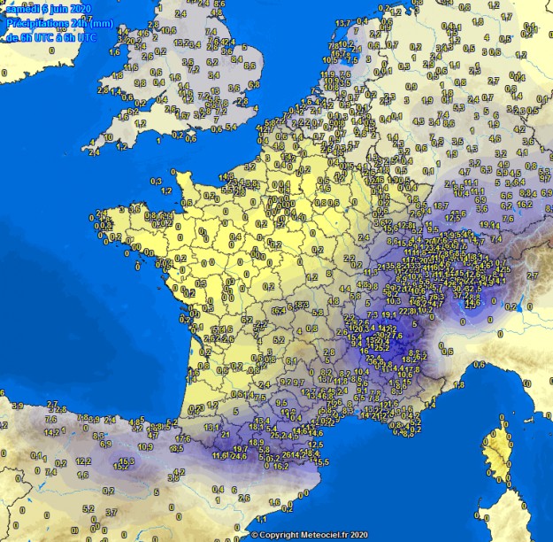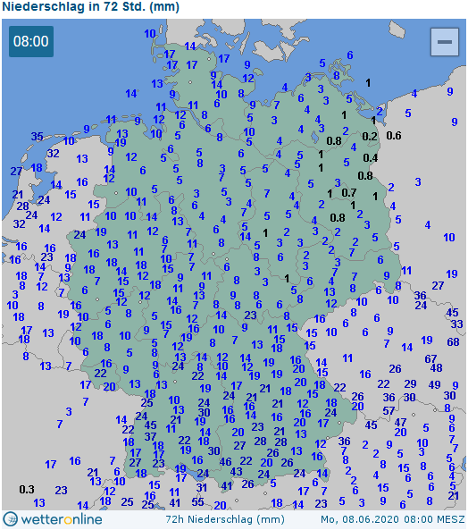 Belgische boeren zijn minder goed bedeeld wat de neerslag betreft. Dicht op de Nederlandse grens viel nog wel zo'n 20 millimeter, maar richting Wallonië houdt het met 5 tot 10mm wel op. Trek je de Franse grens over, dan is nauwelijks regen van betekenis te zien. In Duitsland viel vooral in het zuiden veel regen. In Beieren tussen de 30 en 40mm. Langs de Nederlandse grens viel enige regen van betekenis, maar verder oostelijk niet meer dan een handvol millimeters.