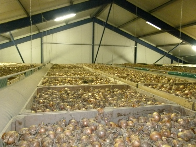 Sinds de oplevering van de nieuwe bewaarplaats heeft vof Jansen opslagcapaciteit voor bijna 3.000 kisten. De nieuwe schuur biedt ruimte aan 6 keer 2 rijen kisten (15 diep en 6 hoog), gescheiden door smalle luchtgangen die afsluitbaar zijn met luchtbalgen. Toch is de nieuwe schuur niet alleen ingericht voor kistenbewaring. "We kunnen op 3 verschillende manieren drogen", vertelt Dirk. "Allereerst de vertrouwde methode met blazen via de palletsleuven. Daarnaast kunnen we blazen via de afsluitbare luchtgangen. En we kunnen die twee methoden ook nog combineren. Dat geeft in de praktijk de meest gelijkmatige droging".
