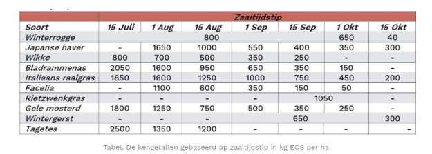 Van Essen laat de groenbemester zo'n 3 maanden groeien en ploegt hem in november onder. "Je kunt dan mooi zien wat een enorm pakket wortels er is gevormd. En bovengronds staat er ook een mooi gewas. Ik heb nu altijd een goed geslaagde groenbemester. En ondertussen pak ik ook de aaltjes mee."