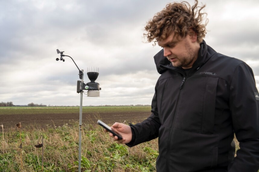 Gedurende zijn eerste seizoen als zelfstandig agrarisch ondernemer kreeg Leendert Jan direct te maken met flinke weersextremen. "Onze grond is dan wel zwaar, alles wil er heel best op groeien. Toch moesten we dit voorjaar de doperwten beregenen voor een egale opkomst. Op zo'n moment ben je blij dat je over een eigen weerstation beschikt. Die staat centraal op het bedrijf." Bij het uitvoeren van bespuitingen kijkt de akkerbouwer standaard in de app van AgroExact. "Alles zit erin met een overzicht per uur, zowel op de korte of lange termijn. Dat zie je niet bij alle aanbieders, en zeker niet de eenvoudigere systemen. Zo kan ik beoordelen welke percelen ik als eerste ga spuiten. Daarvoor kijk ik vooral naar de windsnelheid- en richting en de luchtvochtigheid. Ik weet vooraf hoeveel tijd ik heb."