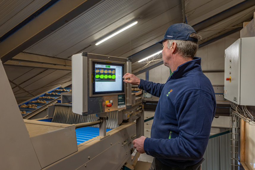 In de pootgoedteelt van Schalk staat vakmanschap voorop. De akkerbouwer in Groningen mag ook graag moderne technieken inzetten om zijn doelen te bereiken, waaronder de Optima Q optische sorteerder. Daarnaast vertrouwt hij op beeldherkenningstechnieken en AI-toepassingen. In de zaaiuien zet een collega-akkerbouwer een spotsprayer in én Schalk kijkt serieus naar een selectierobot. "Daar heb ik hoge verwachtingen van."