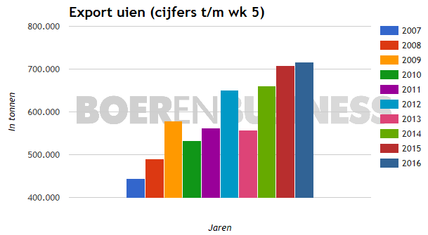 Het totale exportcijfer van dit seizoen is verder door nagekomen informatie van 537 ton gestegen naar 716.821 ton, wat overeenkomt met gemiddeld 23.123 ton per week. Voor kalenderjaar 2017 staat de teller op 110.371 ton (vj. 122.770 ton).