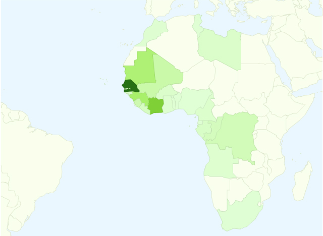 Dat zorgt voor de vraag of deze landen überhaupt plek hebben voor duizenden tonnen uien. Wie de exportcijfers vertaalt naar een kaart van Afrika ziet direct dat het zwaartepunt aan de westkust ligt. Daar wordt veel geïmporteerd en geconsumeerd.