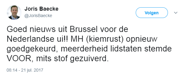 Sinds november 2016 stond het gebruik van MH in de teelt van uien ter discussie. De Europese toelating voor de actieve stof verloopt per 31 oktober 2017. Dat betekent dat de groeiregulator na die datum niet meer verkocht mag worden.