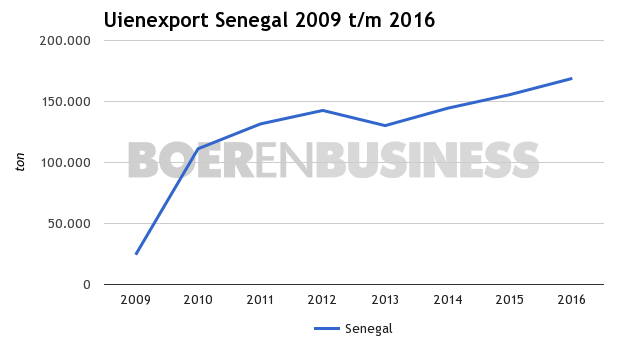 De export van uien naar Senegel is de laatste jaren flink gestegen.