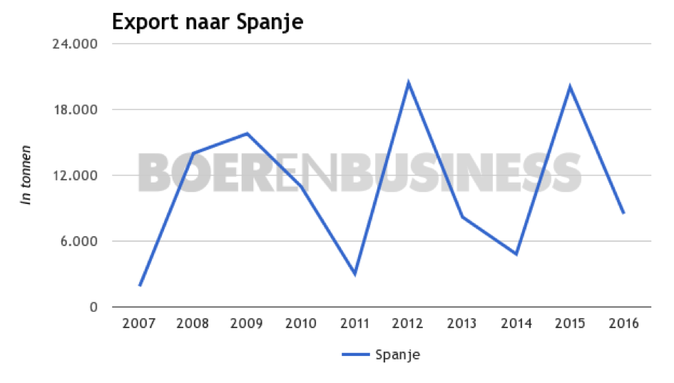 De export naar Spanje is al jaren behoorlijk volatiel.