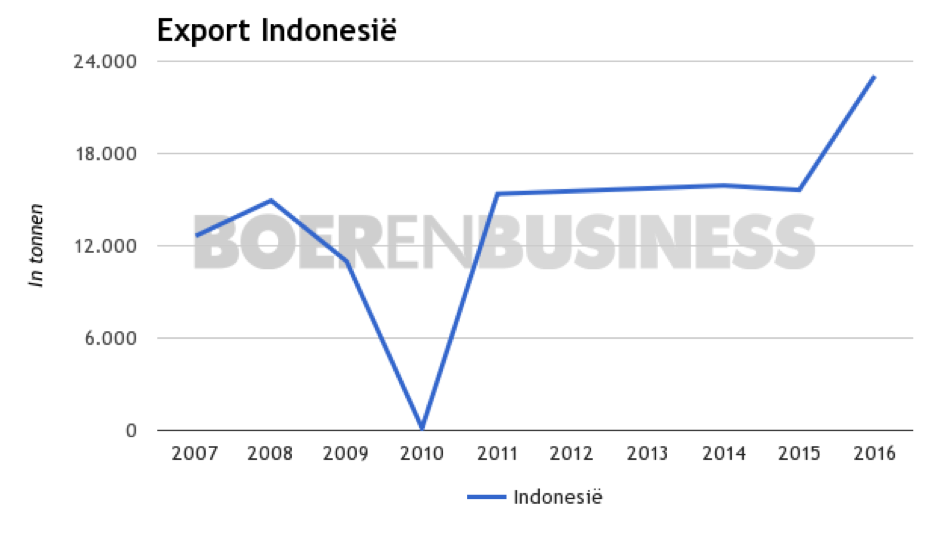 In de 5 jaar daarvoor werd er jaarlijks zo'n 15.000 ton naar Indonesië geëxporteerd. Al met al zijn er tevreden gezichten waar te nemen, wat betreft de afzet naar Indonesië van dit seizoen, onder de Nederlandse exporteurs.