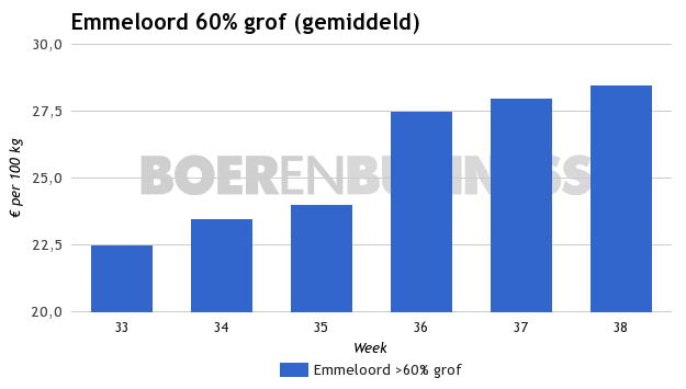 Wanneer de 3 regionale beurzen naast elkaar worden gelegd, dan wordt er voor de 0% tot 30% grove uien €15 tot €22 genoteerd en voor de 30% tot 60% grove uien wordt €20 tot €26 betaald. Beurs Goes en Middenmeer zetten deze week de €30 op het bord.