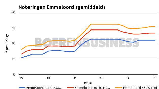 De regionale beurzen in Goes, Middenmeer en Emmeloord noteren deze week onveranderd voor alle sorteringen. Terwijl in Emmeloord een vaste stemming wordt genoteerd, geeft de beurs in Middenmeer juist een prijshoudende stemming aan.