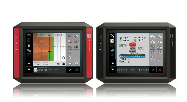 De Touch800 terminal, die op de Sima wordt geïntroduceerd, is het kleinere broertje van de Touch1200. Die werd op de Agritechnica al geïntroduceerd. Het grote verschil zit hem in de grootte. De 1200 heeft een 12 inch scherm (30 centimeter). Bij de 800 is dat 8 inch, ofwel 20 centimeter. Hierdoor kun je maar één menu op het scherm weergeven. De aparte navigatiebalk blijft wel bestaan.