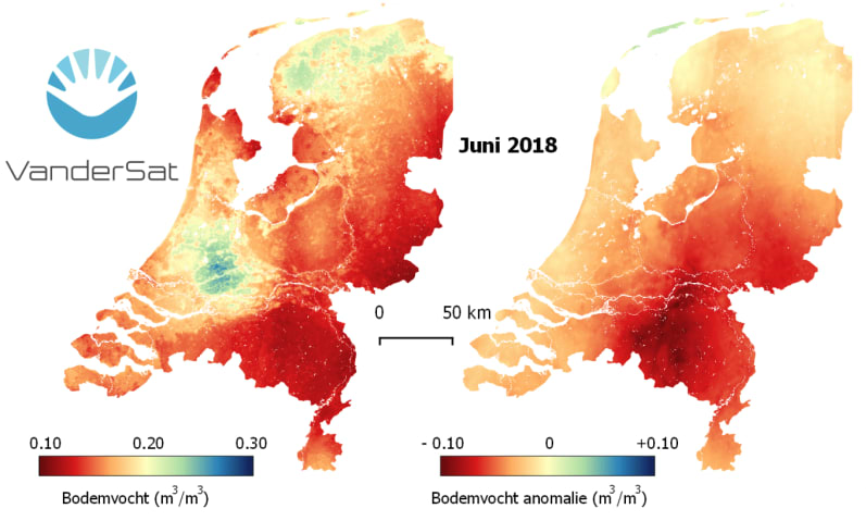 VanderSat berekende vorig jaar dat het in Nederland eind juni 20% droger was dan normaal. Oprichter en CTO Richard de Jeu noemde het de ergste droogte in 15 jaar. Echter, voldoende regen viel kort daarop, waardoor 2017 helemaal niet zo droog eindigde.