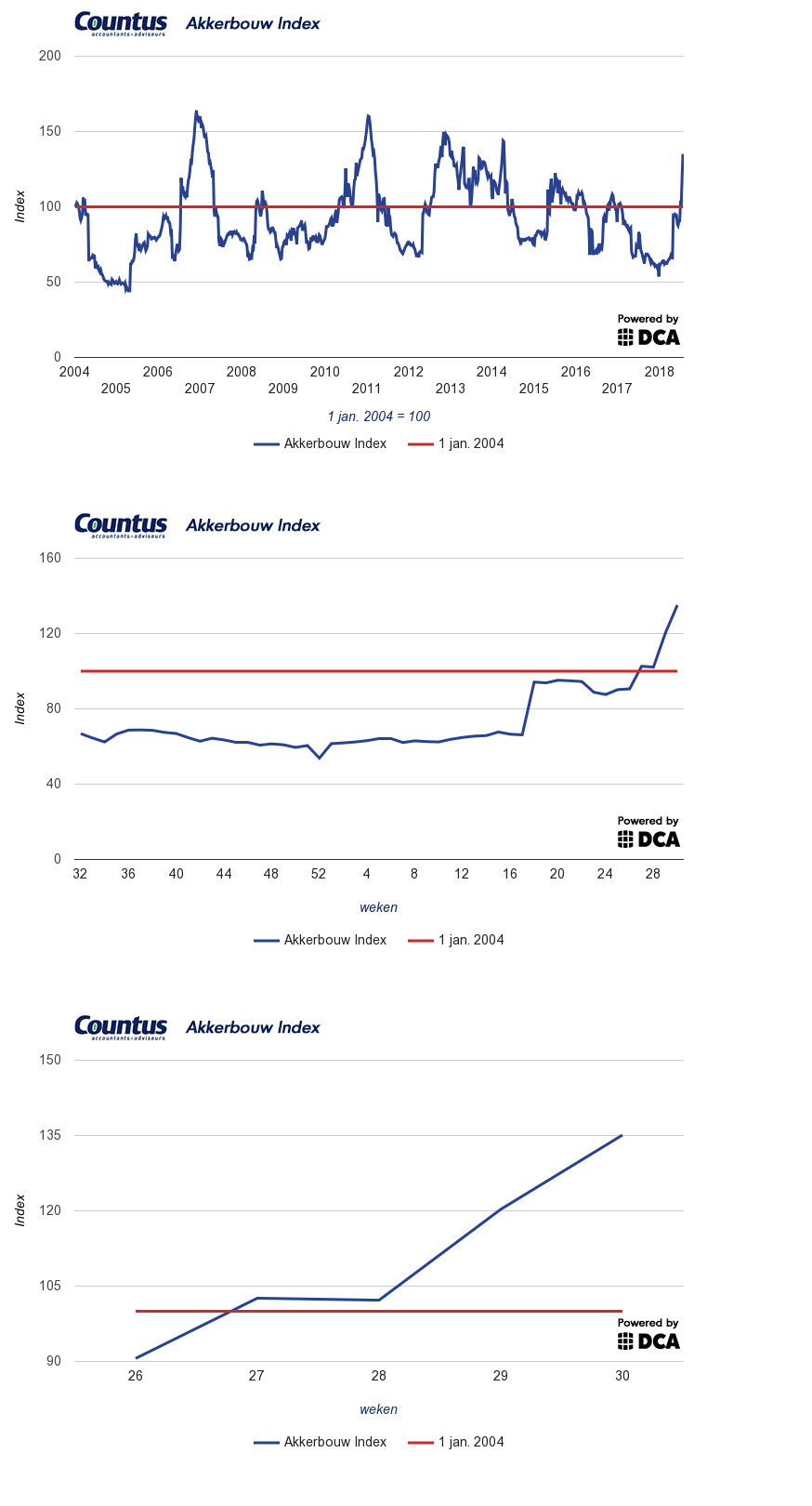 Het cijfer veerde week na week op en ging van 102,60 in week 27 tot 139,20 in week 31. Met 15,20 punten is de stijging tussen week 29 en 30 zeer groot. Het gebeurt niet vaak dat de Index week na week een toename laat zien.