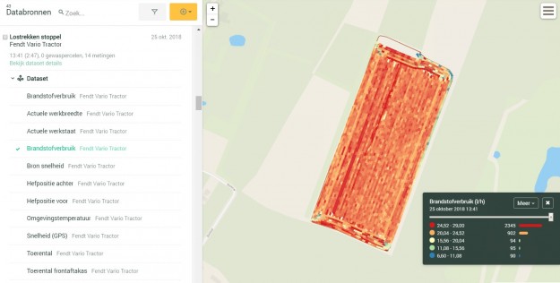 Na de aanmelding zie je (naast de bestaande percelen, gewassen en adviezen) ook de data afkomstig van het machinepark. Bewerkte percelen worden automatisch ingeladen en sinds kort is het mogelijk AB-lijnen te beheren. De volgende stap is het maken van taakkaarten en deze naar de trekker sturen. Is het werktuig, bijvoorbeeld een strooier of spuit, Isobus-gestuurd dan moet dit probleemloos werken. Daarna is het beheren van lijnen uit andere gps-systemen een mogelijkheid, mits het bedrijf een gekleurd machinepark heeft of rtk-gps van een andere leverancier.