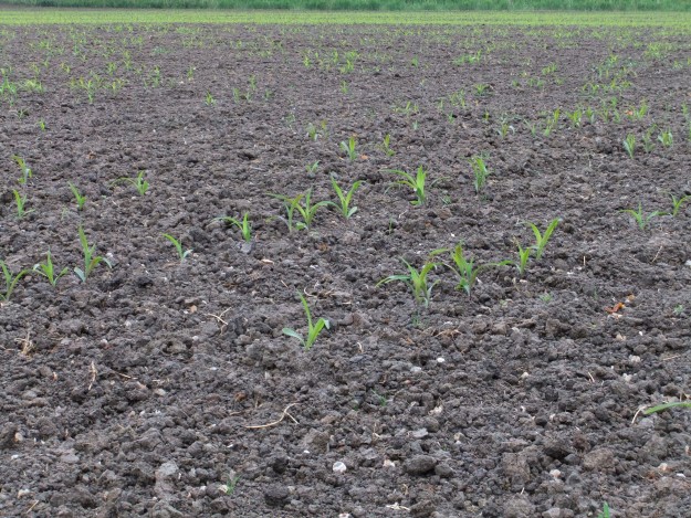 Onregelmatige opkomst van de maïs als gevolg van een te grof zaaibed