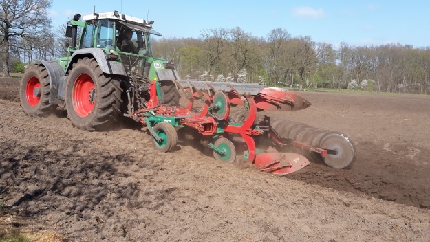 Ploegen met vorenpakker om vochtige grond boven te halen en deze tevens aan te drukken