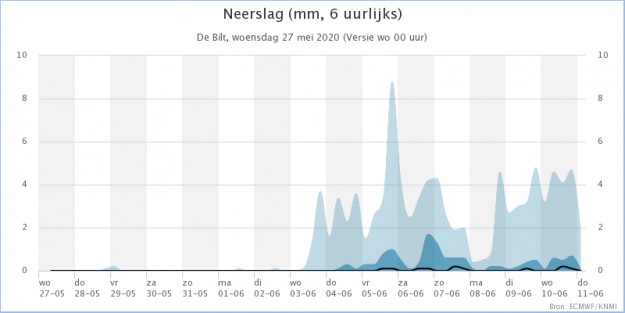 Voor de gewassen op het land is het al langdurig droog. Daar waar voldoende beregend kan worden levert dat nog geen problemen. Waar dat niet kan, komt de gewasgroei onder druk te staan. Dit is metname het geval in Zeeland en in Zuid-Limburg. Ook op de hogere zand- en dalgronden vermindert de groeikracht van gewassen.