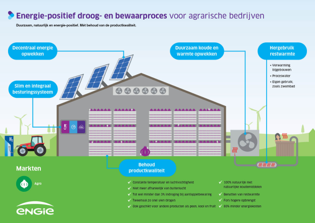 ENGIE Refrigeration heeft methodes ontwikkeld voor het duurzaam en buitenluchtonafhankelijk drogen en bewaren van aardappelen en andere akkerbouwproducten: mechanisch koelen. Specifiek voor het bewaren van uien ontwikkelde ENGIE condensdrogen. Een systeem waarbinnen uien tot wel twee keer sneller drogen. Het is een mechanisch bewaarsysteem in een vrijwel geheel gesloten omgeving. Er komt geen buitenlucht aan te pas, of alleen als de condities goed zijn. De verschillende fasen van het bewaarproces zijn volledig geautomatiseerd. De computer meet voortdurend de temperatuur en de vochtigheidsgraad in de bewaring en stelt de koelcapaciteit en het bewaarprogramma af op de koelvraag.