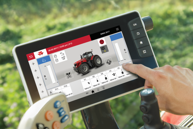 Voor de bediening van de verschillende componenten van precisielandbouw en ISOBUS-machines heeft Massey Ferguson de Datatronic 5 geïntroduceerd. Deze touchscreen terminal laat zich bedienen als een tablet. Ook veel functies en instellingen van de trekker worden met de terminal bediend. Met de Datatronic 5 terminal komen losse bedieningskasten van aangekoppelde ISOBUS-machines in principe te vervallen. "Maar wie dat wil, bijvoorbeeld als je meerdere machines tegelijk moet bedienen, kan een identieke tweede terminal aankoppelen", aldus Verdonschot. "Het ziet er in de cabine sowieso een stuk opgeruimder uit."