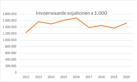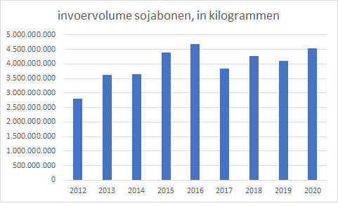 De invoer vanuit Brazilië is volgens het CBS dit jaar verder gestegen, en nogal sterk. In de Nederlandse soja-importen zit evenwel geen gestaag stijgende lijn. Net als de waarde van de invoer, schommelt ook het volume van jaar op jaar.