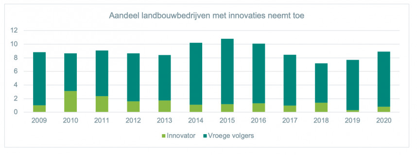 Innovatiekracht is belangrijk voor de toekomstbestendigheid en de concurrentiekracht van de sector. Ook de overheid vindt dit. In 2020 gaf het ministerie van Landbouw, Natuur en Voedselkwaliteit (LNV) aan dat het bij minimaal 10% van de agrarische bedrijven innovaties wil zien. De overheid stimuleert een innovatieve agrarische sector met behulp van onder meer subsidies. Volgens Wageningen Universiteit neemt het aandeel landbouwbedrijven met innovaties toe, maar volgens de laatste meting in 2020 wordt het streefgetal van de overheid nog niet gehaald. Er moet dus nog wel wat gebeuren.