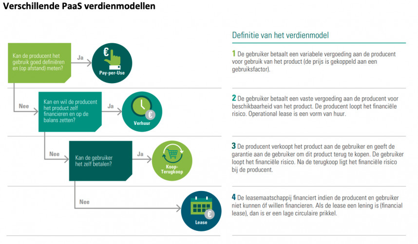 Om ervoor te zorgen dat de boer of tuinder geen hoge investeringskosten heeft en tegelijk steun krijgt bij technische verbeteringen en onderhoud, kan het voor de producent nuttig zijn om een ander verdienmodel te hanteren. Zo blijft bij Product-as-a-Service (PaaS) de machine eigendom van de producent en kan de gebruiker – de melkveehouder, akkerbouwer of broederij – tegen een relatief lage en periodieke vergoeding gebruikmaken van de machine. In het abonnement zit dan tevens service, onderhoud en eventueel andere diensten.