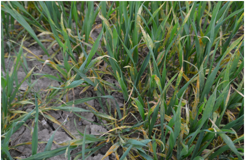 Onder deze omstandigheden groeit de tarwe ook traag. Het gewas blijft daarom voorlopig wat korter en steviger. Op zich geen slechte zaak, maar wanneer er regen komt wordt de kans op een snellere verspreiding van ziekten naar de hogere bladetages daardoor wel iets groter.