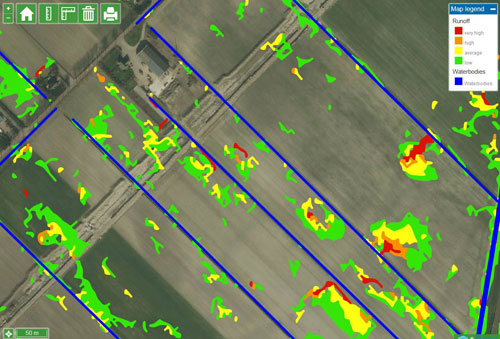 Met behulp van precisielandbouw kan afspoeling van het perceel in kaart worden gebracht.