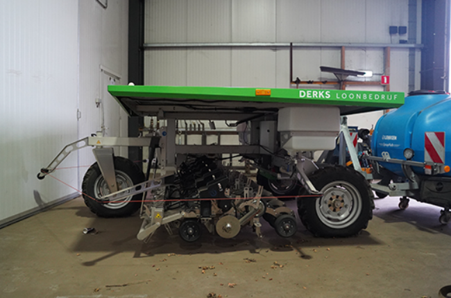 Behalve over een spotsprayer beschikt het bedrijf sinds twee jaar ook over een Farmdroid-zaai- en schoffelrobot. Tot dusver is deze machine alleen ingezet in de eigen suikerbieten en cichorei. "Ook voor deze machine geldt: hij levert goed werk af, maar de capaciteit is niet erg groot. Dat maakt grootschalige inzet lastig", aldus Bern.
