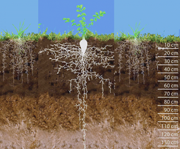 De 3 gewassen wortelen in diverse bodemlagen: Westerwolds raaigras en Japanse haver bewortelen intensief in de bouwvoor en de bladrammenas maakt een dikke penwortel aan die tot meer dan 1 meter diep gaat. Deze diverse beworteling verbetert de bodemstructuur en geeft een zeer hoge nutriëntenvastlegging. LG Onderzaai ontwikkelt na de maïsoogst door tot een fors en biodivers gewas, dat zeer veel effectieve organische stof levert.