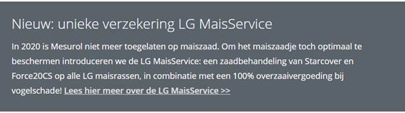 Kies voor de vroege, en in Nederland ontwikkelde, oogstzekere LG 31-maïsrassen met Starcover coating. De rassen zijn optimaal bestand tegen het Nederlandse klimaat en door de coating gaat de maïs nog efficiënter om met vocht en nutriënten. Onze specialisten voorzien je graag van persoonlijk advies op maat bij je rassenkeuze voor 2020.