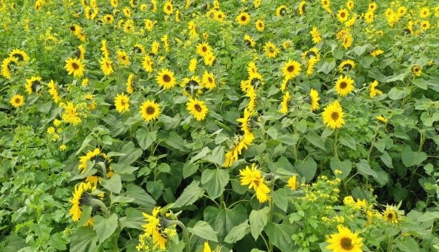 Max vult aan: "Een mengsel is ook beter voor de biodiversiteit. En als de zonnebloemen in bloei komen, is dat een prachtig gezicht. Dan moet je echter  wel voor half augustus zaaien en op tijd klepelen, want je wilt natuurlijk niet dat de zonnebloemen zaaien."