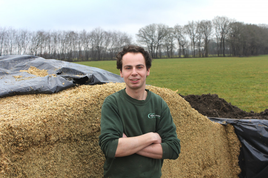 Om goed te kunnen sturen op zijn gras- en maïsteelt wil Jelle de cijfers goed in beeld hebben. "Mijn vriendin Esther werkt als adviseur bij een mengvoerleverancier. Samen met haar vul ik de KringloopWijzer in. Ken je cijfers, want dan weet je precies wat je doet en kun je ook sturen", vertelt Besten. "De Challenge heeft mij nieuwe inzichten opgeleverd. Ik heb met name de stikstofnalevering uit groenbemesters en uit gescheurd grasland veel beter in beeld. En de bemestingsbehoefte van onze maïs. Zo kan ik efficiënter bemesten. Niet alleen met onze eigen drijfmest en vaste potstalmest. Maar ook met kunstmest, zowel vloeibaar, als korrel en granulaat. Daarnaast voeren we mineralenconcentraat aan, een kunstmestvervanger waar we geld op toe krijgen. We slaan het apart op in een foliebassin en benutten het concentraat met name op grasland."