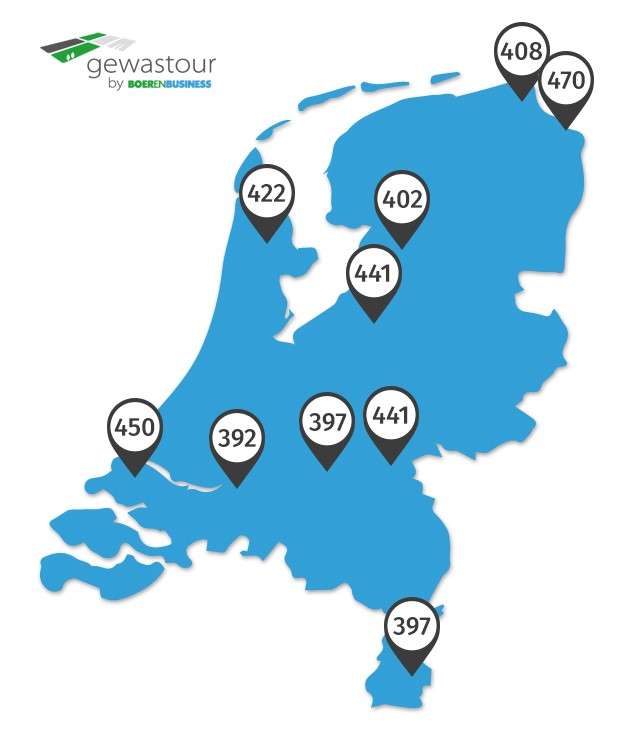 Als we kijken naar het gemiddelde onderwatergewicht van de afgelopen 5 jaar, dan komt die uit op 365 gram. Dit betekent dat alle percelen daarboven noteren. Het gemiddelde onderwatergewicht van alle percelen die meedoen aan de Gewastour komt uit op 422 gram.
